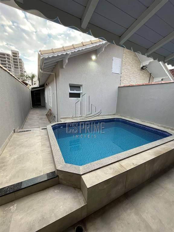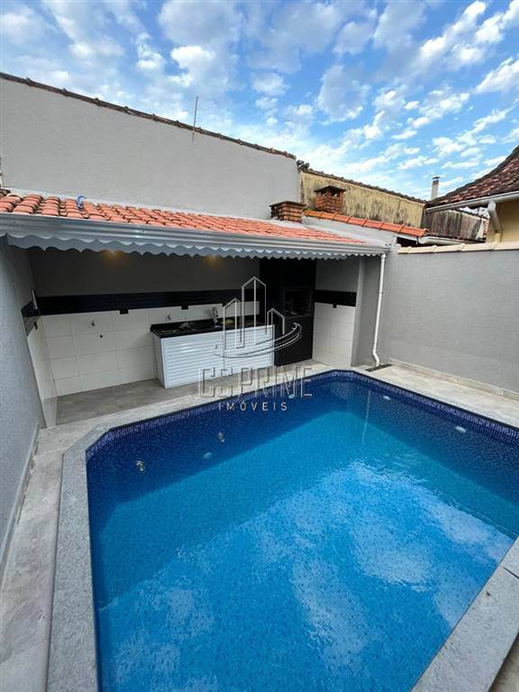 CASA GEMINADA COM PISCINA ? dormitorios sendo suite com hidromassagem, sala com sanca com iluminacao em LED, cozinha americana com pia em ?L?, torneira gourmet e ilha, banheiro com nicho, box de vidro e pia esculpida, pisos internos e externos em porcelanato, area de servico, cobertura nos fundos com churrasqueira e pia, telhado com calha, garagem coberta para carros, interfone com camera, corpo da casa e muros em grafiato e textura, fino acabamento e excelente localizacao.ACEITA FINANCIAMENTO BANCARIO
