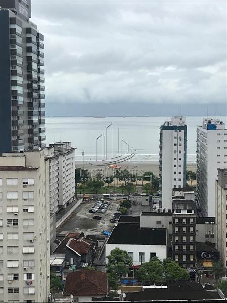 Sensacional... no Coracao do Gonzaga com vista ao mar. Planta otimizada, gerando sensacional integracao entre os ambientes. Com sala integrada a varanda, a cozinha, gerando rara conveniencia. Localizado no 15? andar. 2 dormitorios com 1 suite. 1 banheiro social e 1 de servicos revertido para integrar a lavanderia. Localizado no melhor trecho: Gonzaga com a praia a 5 minutos. Lazer necessario gerando um justo valor de condominio, com uma vista linda da cobertura onde fica localizada a piscina e demais dependencias de lazer, faca uma visita e venha desfrutar desse sonho!